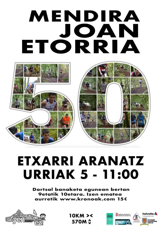 La 50. Mendira Joan-Etorria 2025 se disputará el domingo 5 de octubre de 2025 a las 11:00 h en Etxarri Aranatz (Navarra). Es una carrera de montaña de ambiente local con tradición, organizada por Udaberri Elkartea. Tiene su origen en pruebas montañeras históricas del valle de Sakana y transita por los bosques, hayedos y robledales de Urbasa.